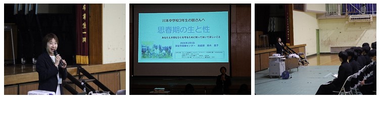 深谷市保健センターの鈴木直子先生を講師に迎え、思春期講演会を開催し、3年生とPTA保健教養部の皆さんに参加いただきました。「思春期の生と性」について、とても良いお話を聞くことができました。