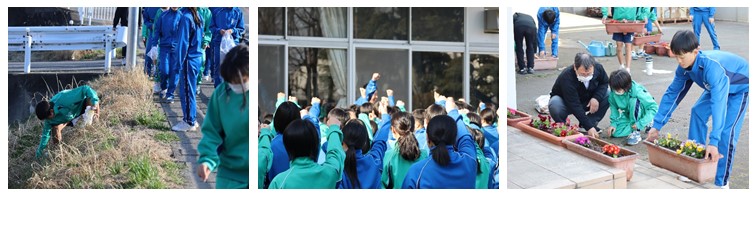生徒会本部が中心となって、学校周辺の清掃活動を行うトラッシュバスターズを実施しました。ボランティアで参加した生徒たちはたくさんのゴミを拾いました。コラボ企画として緑化ボランティア委員会が花を植え、校舎を彩りました。