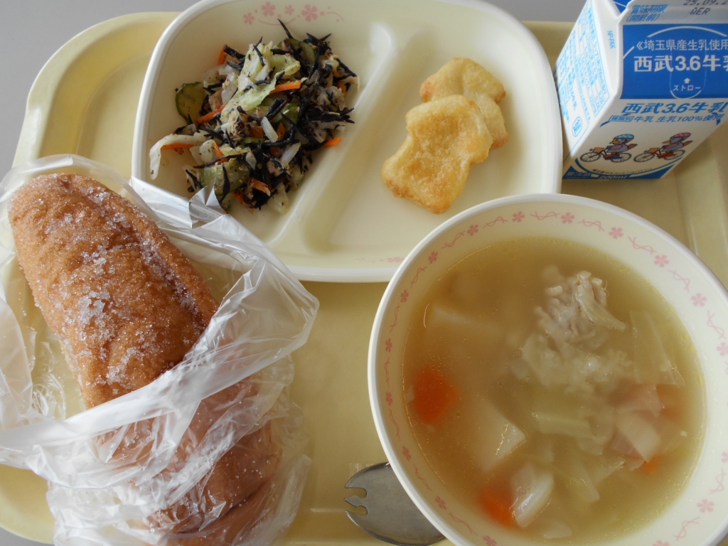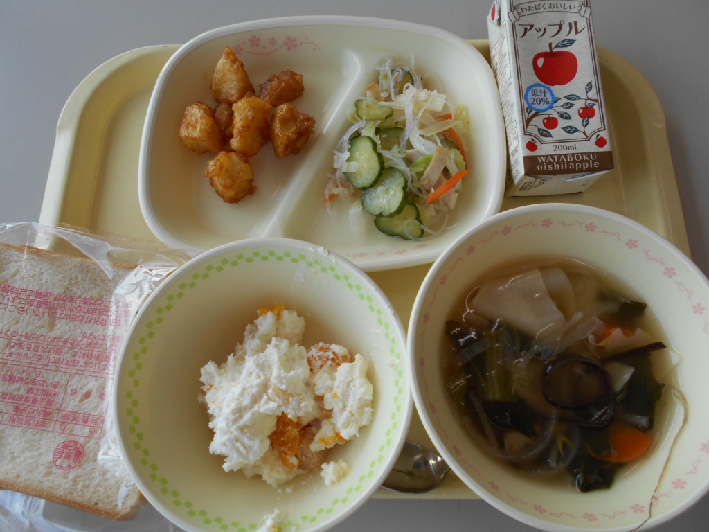 ⭐︎牛乳 ⭐︎白ごま坦々うどん ⭐︎スイートポテト ⭐︎コールスローサラダ 今日はスイートポテトです。昨日から楽しみにしていた子もいました! 高学年にはおまけを入れましたが、スイートポテト争奪戦じゃんけんをしているクラスが多かったです さつまい...