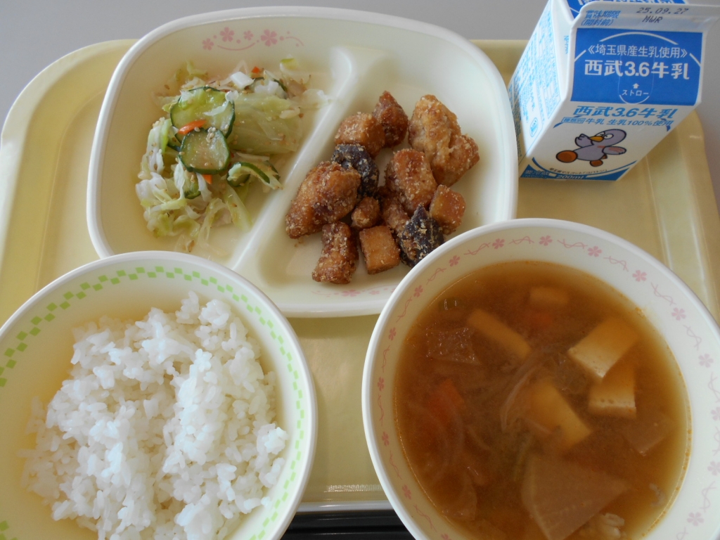 今日の給食は、ごはん、マーボー豆腐、揚げ餃子、中華スープでした。 揚げ餃子はカリカリで食べ応えがあり、とてもおいしかったです!!マーボー豆腐もご飯に合う味付けで、どんどんご飯が進みました!(^^)! ごちそうさまでした!!