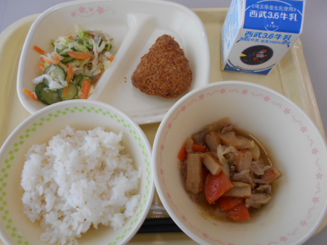 ⭐︎牛乳 ⭐︎小江戸カレー ⭐︎大豆のカリカリ揚げ ⭐︎ハムと大根のサラダ 今日の北小で炊いたご飯は新米です。みずみずしく、モチモチした食感でした。 小江戸カレーは、川越市の特産物でもあるさつまいもが入ったカレーです。 川越市は、古い街並みや武家屋...