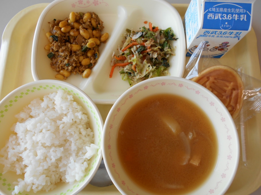 今日の給食は、ごはん、マーボー豆腐、揚げ餃子、中華スープでした。 揚げ餃子はカリカリで食べ応えがあり、とてもおいしかったです!!マーボー豆腐もご飯に合う味付けで、どんどんご飯が進みました!(^^)! ごちそうさまでした!!