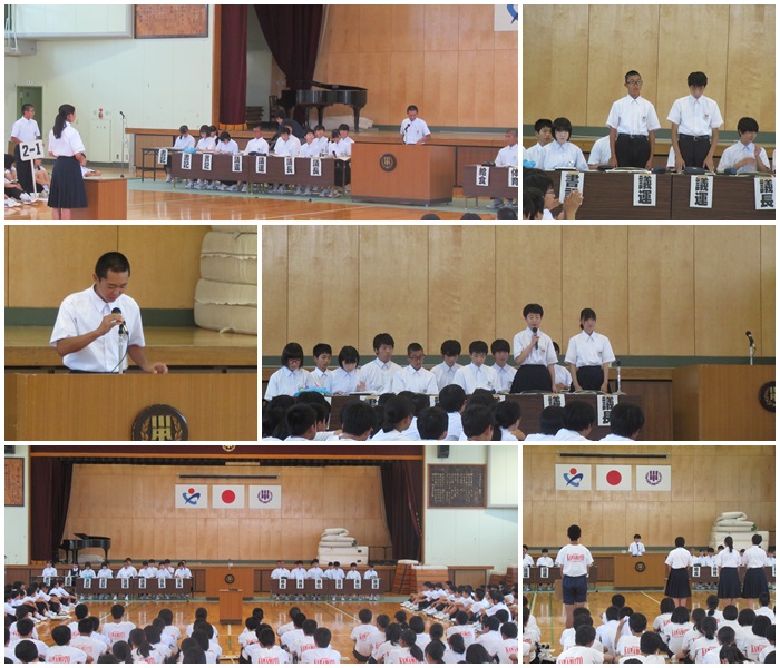 12月24日(水)8:25より体育館で終業式を行いました。 校長先生からは、「自ら学び高め合った2学期」について式のことばがありました。 宿泊行事や学校行事など様々な行事を中心に、自主性が高まったことについてお褒めの言葉がありました。また、冬休みにつ...