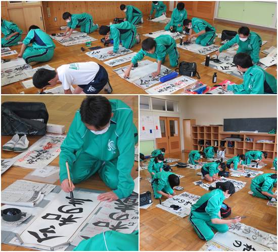 今日は、6年生の書きぞめ練習が行われました。 前回、菊池先生に教えていただいたことを活かし、 さらに良い作品に仕上げようと一生懸命に取り組んでいました。