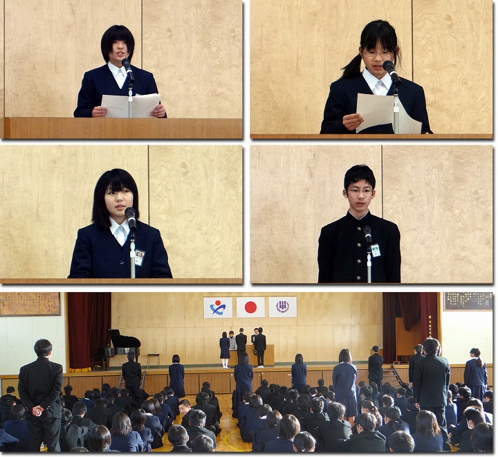 21日、長い2学期が無事に終わりました。2学期は行事の学期でした。 暑い中、クラス一丸となって頑張った体育祭。 心を一つに歌いあげた合唱祭。 大盛況のステージ発表や、吹奏楽部の演奏があった文化祭。 2年生にバトンタッチし、初めての大会、県大会にも多くの部が出場した新人戦。 最後まで粘り強く完走したロードレース大会。