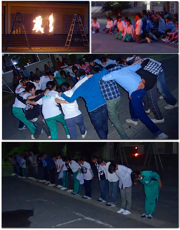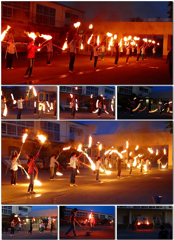 最終チェックが終わり、火をつけて本番!綺麗なトーチトワリングができましたね。最後は円陣を組み、気合いを入れました。