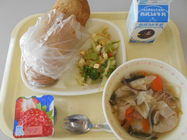 ⭐︎牛乳・ミルメーク ⭐︎ココア揚げパン ⭐︎ハンバーグ(デミグラスソース) ⭐︎ツナとひじきのサラダ ⭐︎ABC スープ ⭐︎みかんゼリー 今日は6年2組のリクエスト給食です いつもより1品多かったので低学年は食べられるか心配でしたが、大人気メニ...