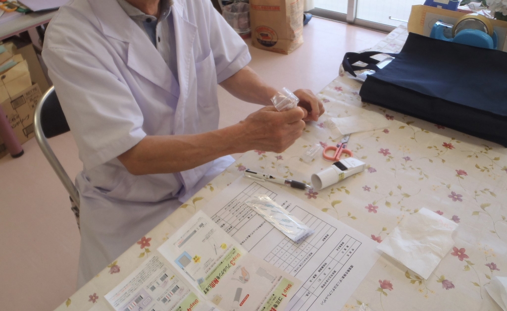 そして、検査キッドにその水溶液をつけて10分間放置しました。