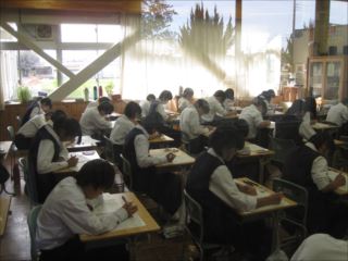 ◆テストに集中している生徒と静まりかえっている廊下です。