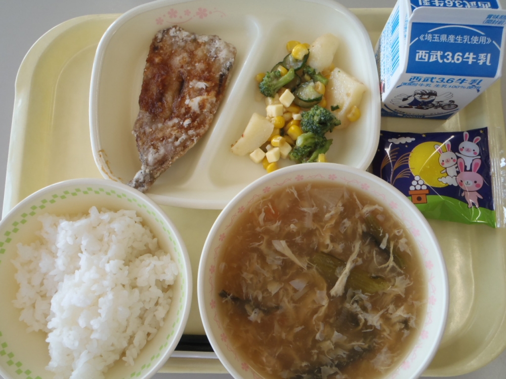 ⭐︎牛乳 ⭐︎秋の香りご飯 ⭐︎さんまの蒲焼き ⭐︎塩こんキャベツ ⭐︎なめこ汁 今日は秋の香りご飯です。学校で炊いた茶飯と具を混ぜました。 さつまいもはシルクスイートという品種です。 調理員さんがおいしい秋の香りご飯を作ってくれました 次回の炊飯...
