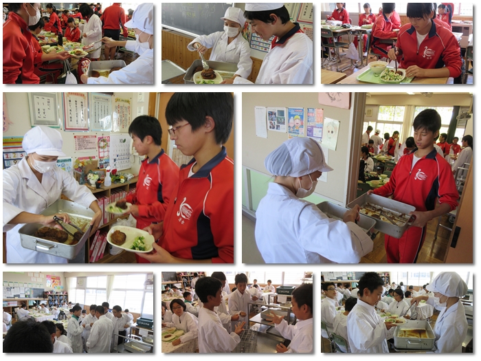 いつも美味しい給食を調理員の皆さん、井田先生ありがとうございます。生徒のみなさん、野菜もしっかり食べましょうね!
