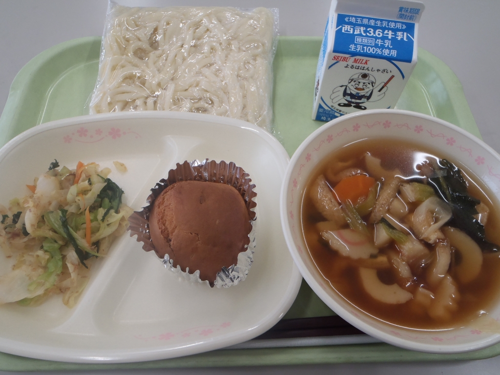牛乳 五目うどん 温野菜