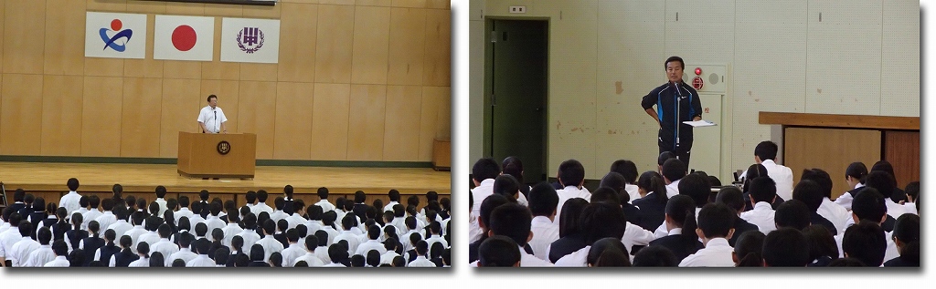 今日は全校朝会がありました。教頭先生、吉田先生から今の自分自身の生活を振り返ることの大切さ、最近の出来事等、様々なお話がありました。