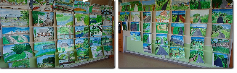 写生会の作品、掲示中