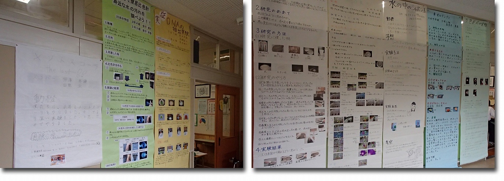夏休みの宿題の一つ、理科の自由研究が廊下に掲示されています。夏休みの頑張りが見られる素晴らしい研究ばかりですので、ぜひご覧ください。