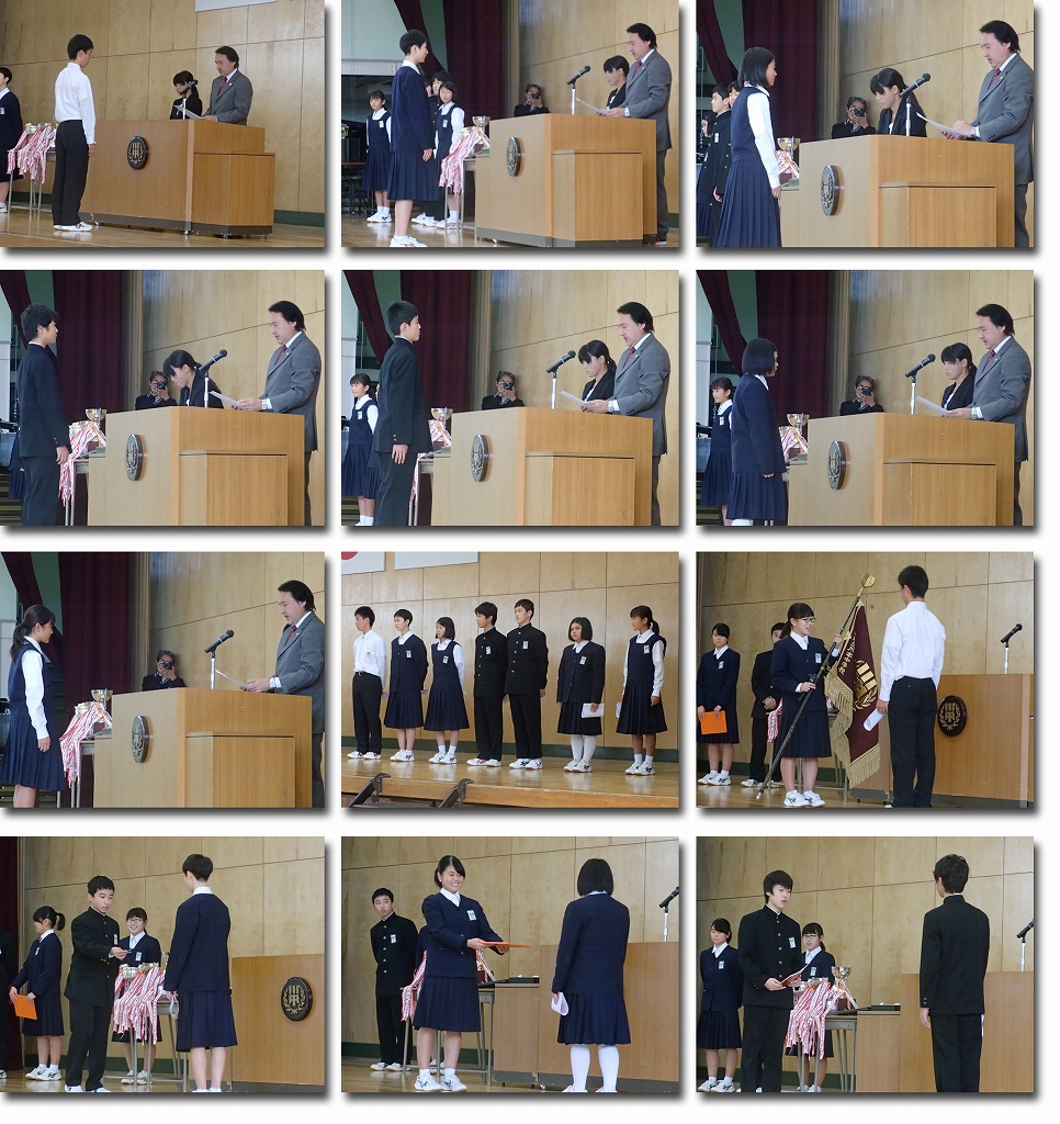 生徒会任命式が行われました。第40期生徒会本部役員の皆さん、本当にありがとうございました。そして、第41期生徒会本部役員の皆さん、伝統を引き継ぐとともにより良い川本中を目指して頑張っていきましょう。