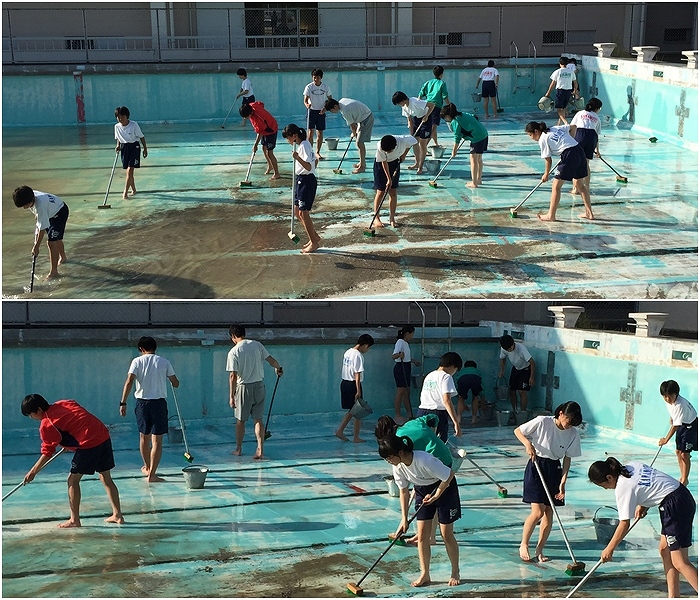6月の後半から体育でプールの授業が始まります。今日はプール掃除がありました!プール開きが楽しみですね!
