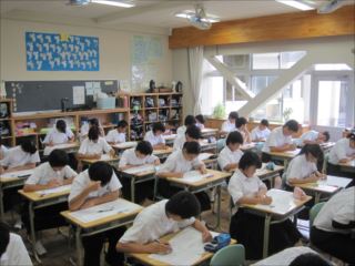 みんな真剣に問題に取り組んでいます。5科のテストですので