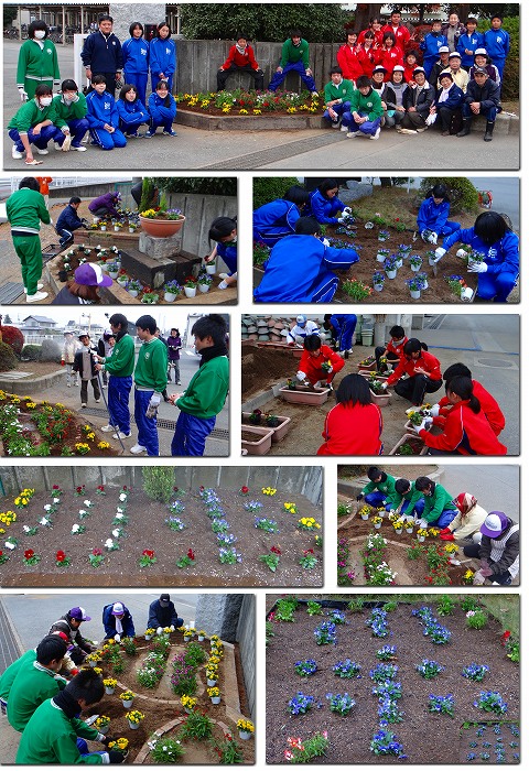 11月30日の放課後、冬花壇の植え替え、ガーデンプロジェクトが行われました。地域の花ボランティアの方と一緒に、緑化委員と、生活環境部で活動しました。 とてもきれいに出来上がりました。 花文字で、『川中』と作ったものが2カ所あります。学校にお越しの際には、ぜひご覧下さい。 ボランティアの方、お忙しい中、本当にありがとうございました。 温かい、地域の触れ合いを感じた日でした。