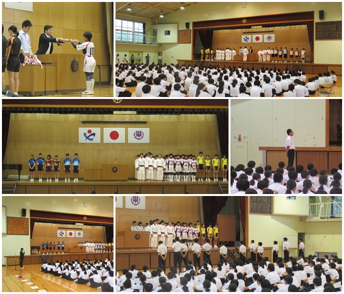 12月24日(水)8:25より体育館で終業式を行いました。 校長先生からは、「自ら学び高め合った2学期」について式のことばがありました。 宿泊行事や学校行事など様々な行事を中心に、自主性が高まったことについてお褒めの言葉がありました。また、冬休みにつ...