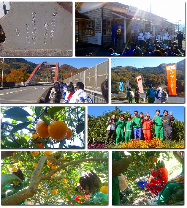 本日、本校の5,6組は市内の合同学習会で寄居町の風布に、みかん狩りに行きました。スタートの波久礼駅から、山頂のみかん園まで、かなりの距離がありましたが、天候に恵まれ、歩く道のりは、とても気持ちがよかったです。 たくさん食べ、おみやげも袋いっぱいに持ち帰ってきました。