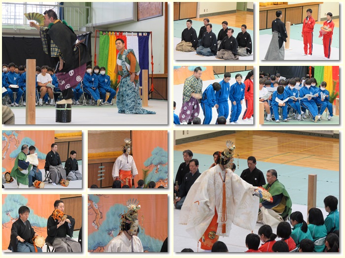 文化庁主催による「平成27年度文化芸術による子供の育成事業(巡回公演事業)」で、皐風会(こうふうかい)による狂言(柿山伏)と能(羽衣)の公演が行われました。前回はワークショップが中心でしたが、今回は実際の公演が中心で、狂言・能ともに保護者の方にもご覧いただき、あまりの素晴らしさに感動しきりでした。
