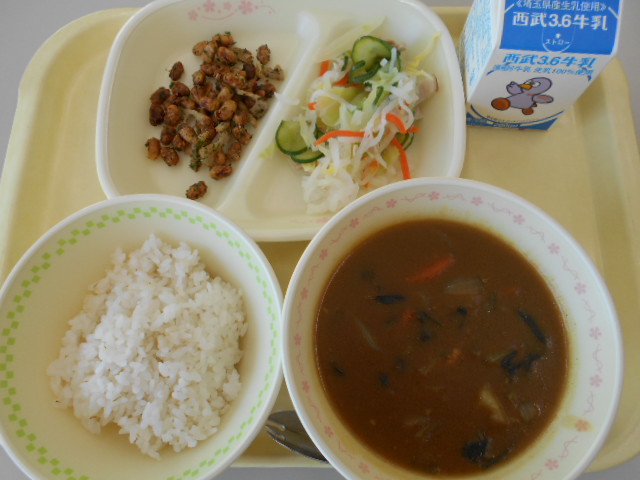 今日は、ごはん、なめこ汁、天丼、骨太サラダでした。 なめこ汁は具がたくさん入っていて、とてもおいしかったです!!昨日からなめこ汁を楽しみにしていた児童もおり、寒い日にはとても温まる一品でした(^^)