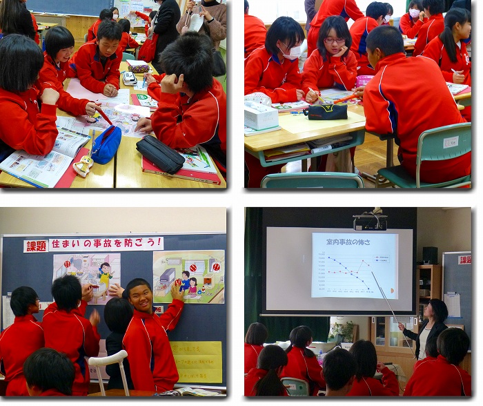 本日の5時間目、2年3組で家庭科の授業研究会が行われました。 『住まいの事故を防ごう』という学習課題でした。班での話し合い活動が積極的に行われ班ごとの発表も素晴らしかったです。2年3組のみなさん、お疲れ様でした。