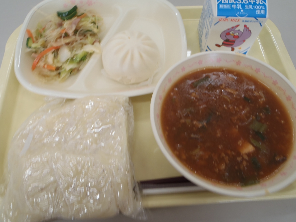 今日の給食は、もやしラーメン、手作り豆腐ドーナツ、チョレギ風サラダでした。 チョレギ風サラダは、ちりめんじゃこやのりが良いアクセントとなっていました。豆腐ドーナツも、中はサクサク、外はカリカリでとてもおいしかったです(^^)