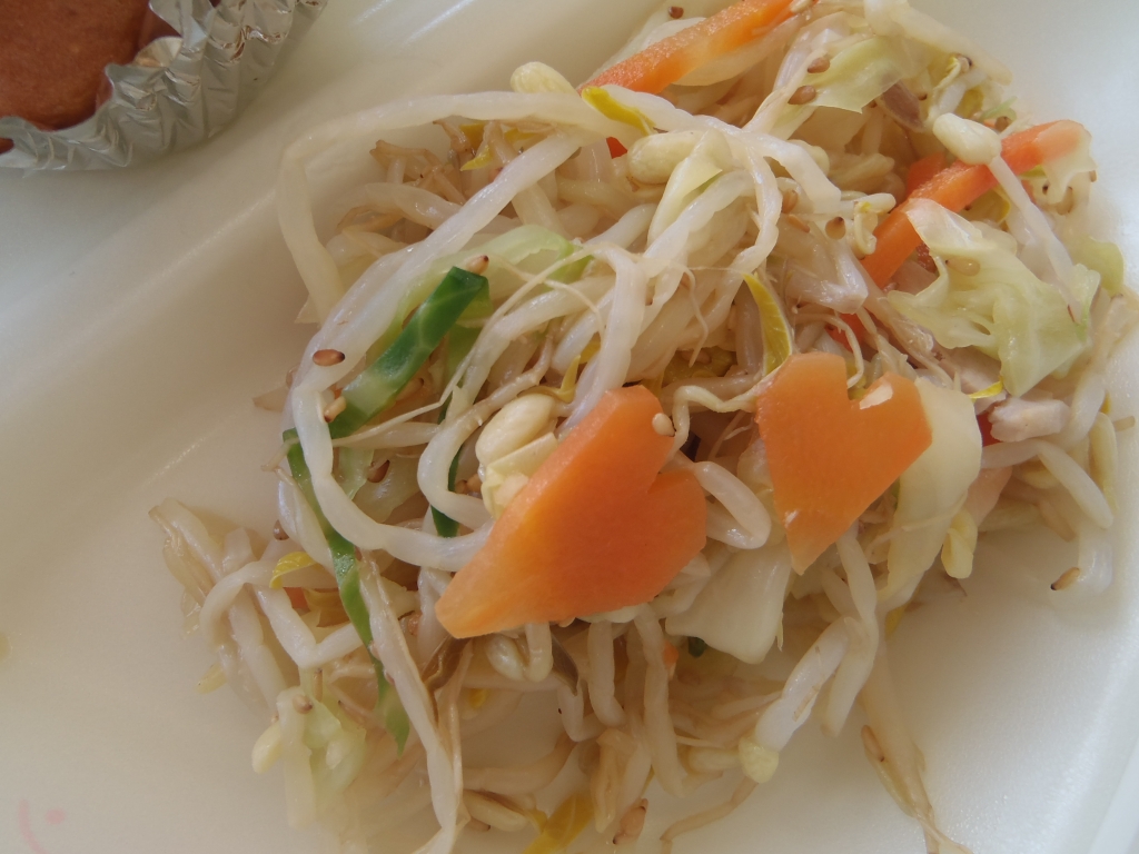 今日の給食は、もやしラーメン、手作り豆腐ドーナツ、チョレギ風サラダでした。 チョレギ風サラダは、ちりめんじゃこやのりが良いアクセントとなっていました。豆腐ドーナツも、中はサクサク、外はカリカリでとてもおいしかったです(^^)