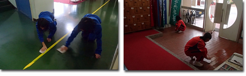 今月になり保健室掃除が新しい班の皆さんになりました。また、玄関掃除の2年生も新しい班となりました。寒い中水ぶきが大変ですが、頑張りましょう!よろしくお願いします!