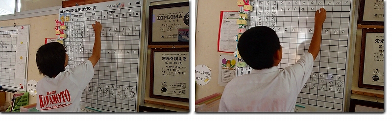 修学旅行引率のため保健室を留守にしましたが、1.2年生保健委員のみなさんが健康観察の提出と出欠席黒板の記入を二日間ともしっかりと行ってくれていました。今日も朝の会終了後に全クラス記入を終えることができていました。明日からもよろしくお願いします。 そして3年生のみなさん、明日元気に登校してください。 |