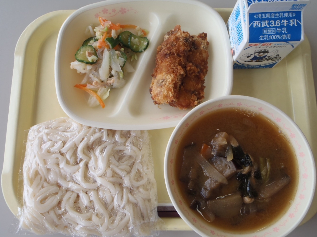 ⭐︎牛乳 ⭐︎ご飯 ⭐︎チキンチキンごぼう ⭐︎和風サラダ ⭐︎なめこ汁 今日はチキンチキンごぼうです。山口県では大人気の給食メニューだそうです。 鶏肉とごぼうをカラリと揚げて甘辛いタレをからめた、ご飯がすすむおかずです。 調理員さんが13キロのご...