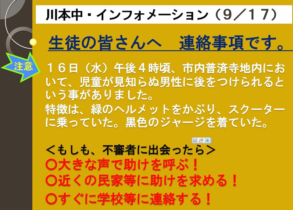 学校でも生徒に注意を与えました。ご家庭でもご指導ください。