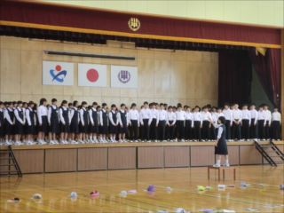 昨日の2年生と同様に、学年合唱や各クラスの合唱をお互いに聞きました。