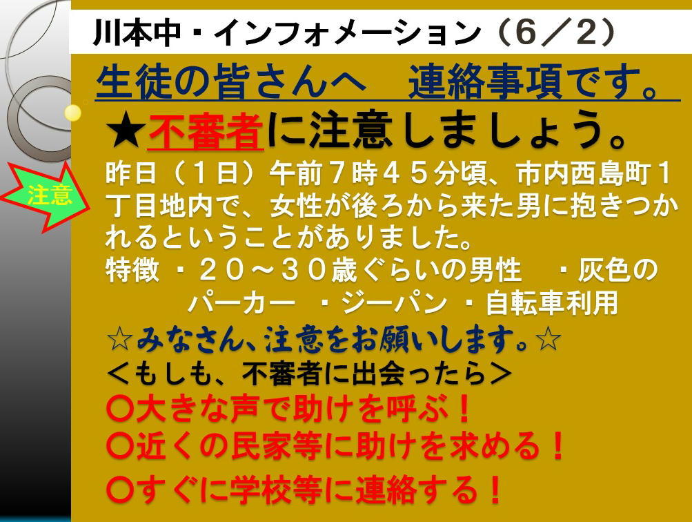 不審者情報です。(6/2)