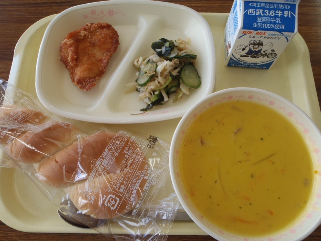 今日の給食は、ご飯、ヤンニョムチキン、切り干し大根とツナのナムル、トックスープでした。 今日はハロウィンということで、スープの中には、おばけやネコなどに型抜きされたにんじんが入っており、とても楽しい気持ちになりました(*^-^*)...