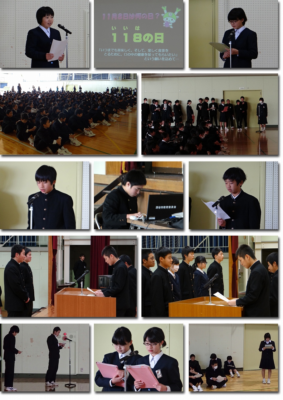 今日は生徒集会本番を迎えました。朝早くから準備をしてくれた1年生、暗記を心がけてくれた人たち…練習以上の成果が発揮できたと思います。