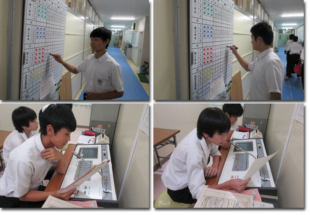 2学期が始まり、保健委員の健康観察も開始となりました。今学期も頑張っています。来週は体育祭のため、これから救護係としての活動が始まります。今日はお昼に放送を行いました。皆さんご協力よろしくお願いします。