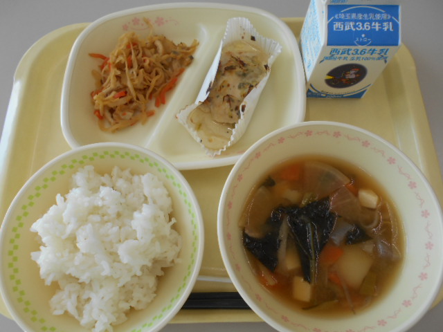 今日の給食は、ご飯、ハヤシライス、ハートオムレツ、花野菜のサラダでした。 ハヤシライスは子どもたちに大人気で、授業中から楽しみにしている児童が多かったです!ハヤシライスのルーとご飯が本当によく合っており、もりもりご飯が進みました(*^^*)