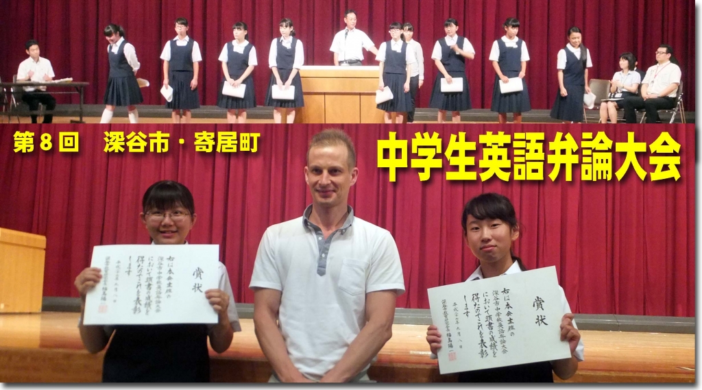 本日、寄居中央公民館にて「第8回 英語弁論大会」が開催されました。本校から二名が参加し優秀な成績を修め、「大里地区英語弁論大会」に進むことができました。おめでとうございます。