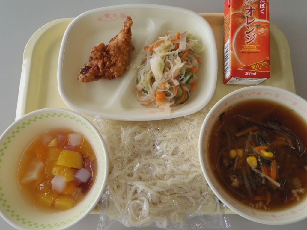今日の給食は、マーボーラーメン、深谷レンガパンケーキ、春雨サラダでした。 マーボーラーメンは少し辛めのとろとろしたスープで、麺との相性も良く、とてもおいしかったです!(^^)!