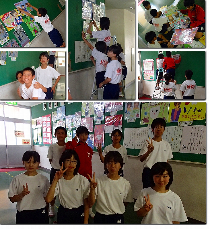 今日の放課後、1年生保健委員のみなさんで歯と口の健康に関するポスターと標語の掲示を行いました。1階体育館に向かう通路に掲示されていますのでご覧ください。 入学して二カ月が過ぎましたが、保健委員は活動が多く大変だったと思います。しかし今日のみなさんの様子を見ていて、成長している姿や、協力して取り組んでいる姿にうれしく感じました。 明日は耳鼻科健診、よろしくお願いします。