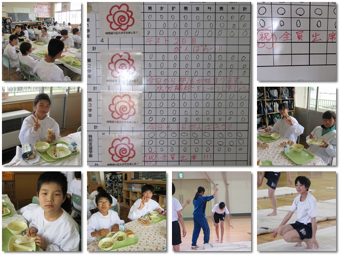 今日は朝から素晴らしい出来事が!現在、実習生の先生に朝の健康観察をみてもらっていますが、今朝は欠席がゼロ!!私自身、川中に来て初めての出来事でとても嬉しかったです。