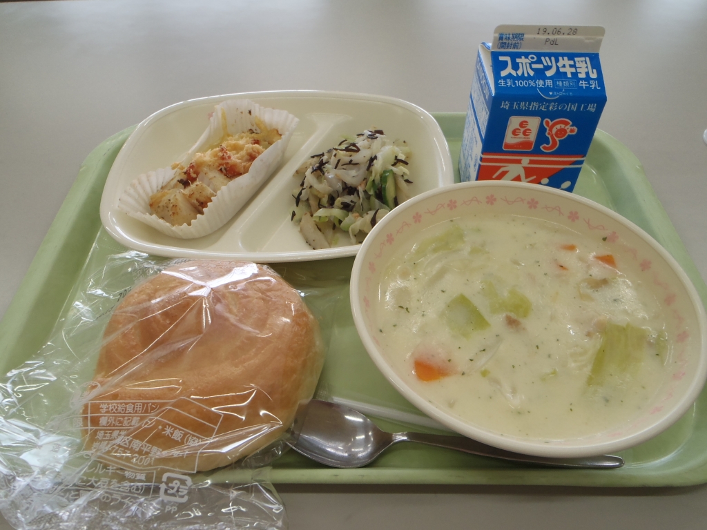 本日のクラムチャウダーの中に入っているじゃが芋は、4,5,6組が畑で収穫した、