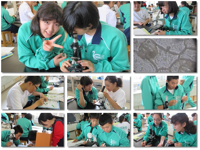 ※右上から2番目の写真は、荒井さんの班が顕微鏡観ていたものです。