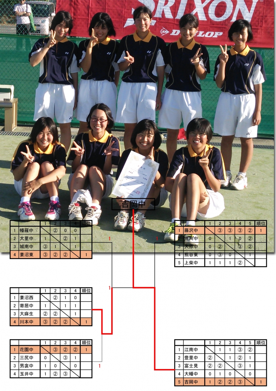 決勝トーナメントの初戦の相手は花園中でしたが、2-1で勝利しベスト4へ、続いて準決勝の相手は妻沼東中でしたが、これも2-1で勝利し決勝に駒を進めることができました。決勝の相手は、藤沢中を破った吉岡中でしたが、残念ながら1-2と惜敗し準優勝となりました。