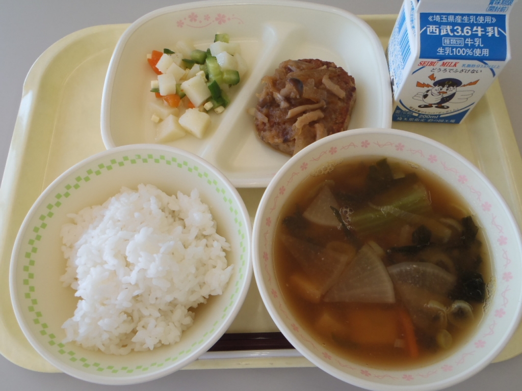 ⭐︎牛乳 ⭐︎ご飯・ふりかけのり ⭐︎さばのしょうが焼き ⭐︎切り干し大根の炒り煮 ⭐︎重忠汁 今日は重忠汁です。 重忠汁は深谷市の郷土料理で、重忠公が幼いころに、うぐいすの瀬というところで、石投げをして遊んでいたことから、白玉団子を石に見立てています。