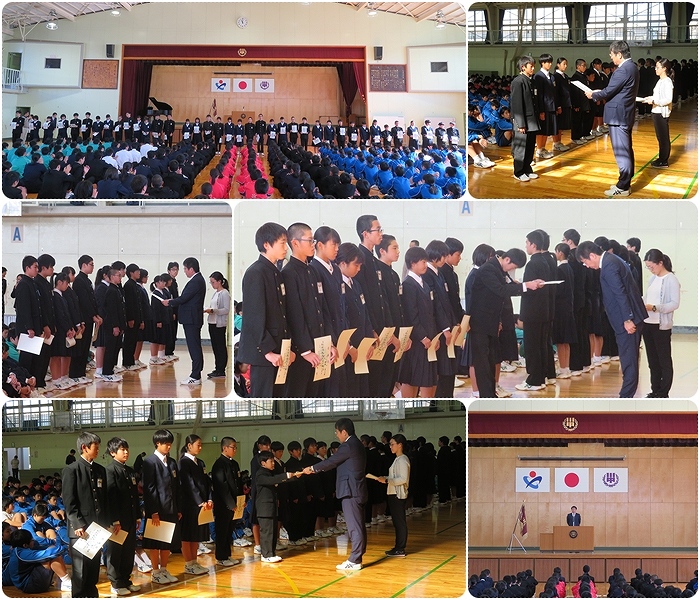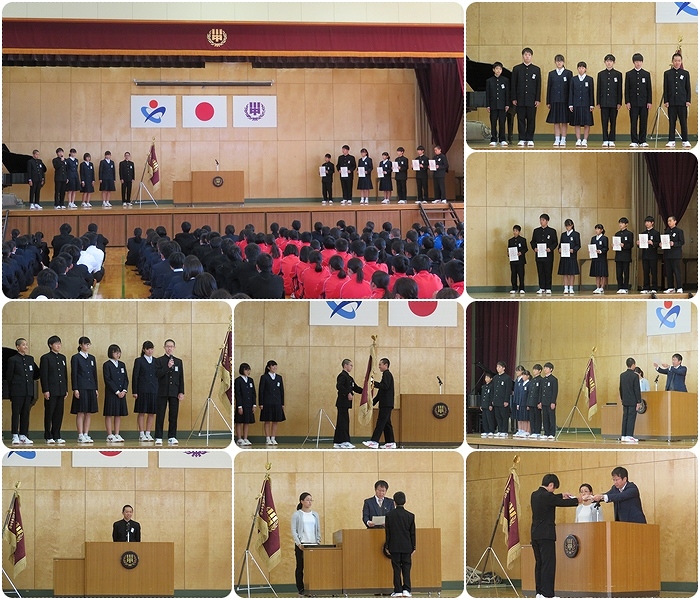 生徒会の引き継ぎ式が行われました。今まで生徒会として活動してくれた7名の生徒は本当にお疲れさまでした。これからは新生徒会長を中心に、これまで以上に川本中を良く出来るよう頑張って欲しいですね。引き継ぎ式の後に、後期学級委員の任命式が行われました。こちらも、クラス・学校の代表として皆を引っ張っていけるよう頑張って下さい!