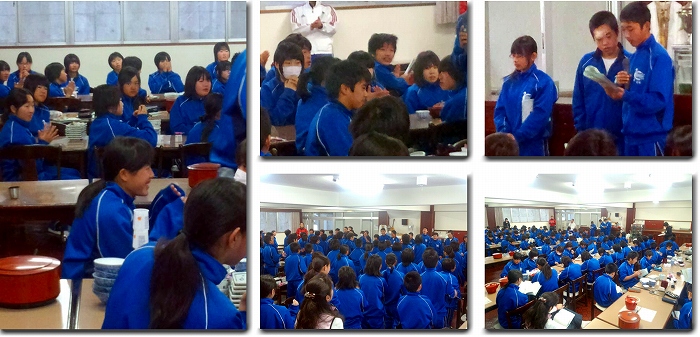 朝食の後、そのまま食堂で朝の会をしました。